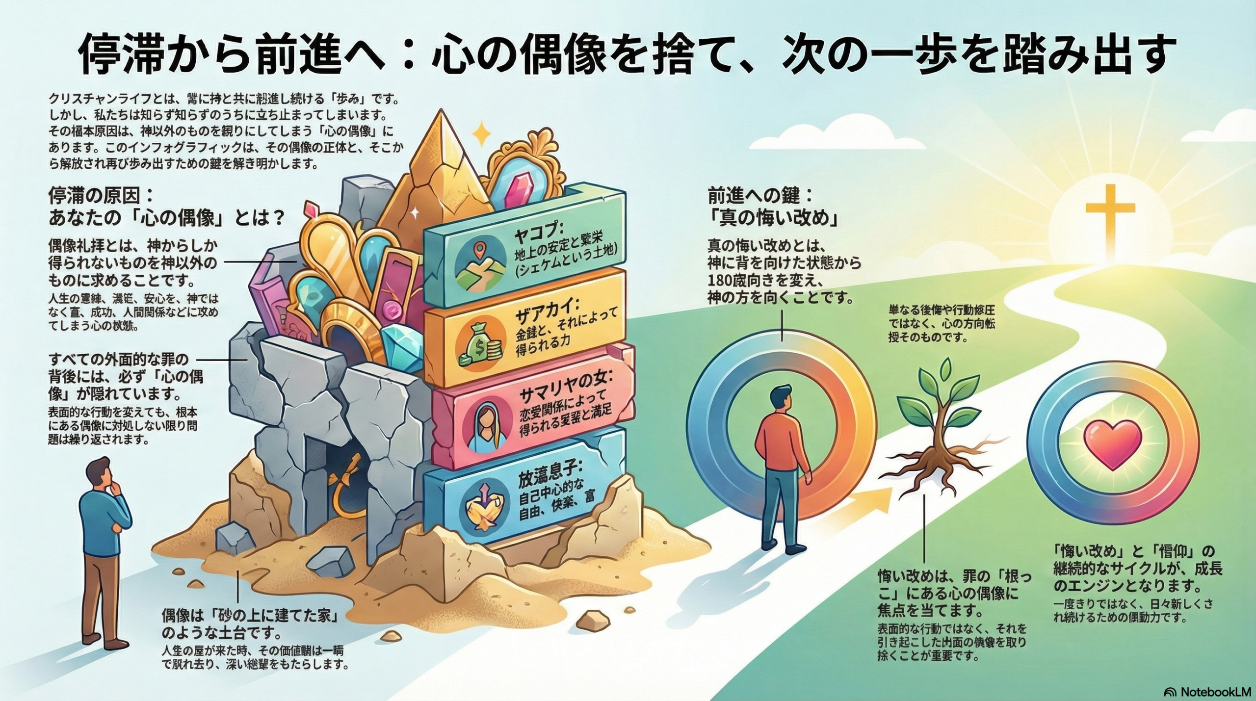 時には立ち止まってしまうこともあるけれど、いつも自分の心に目を向けて、心の偶像を探って神様や良い知らせがどのようなものか思い出したい。