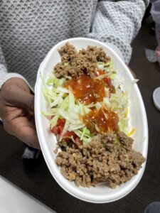 イベント 2026/02/01(日) 愛餐会(ランチ会) 毎月第一日曜日のお昼は愛餐会🍴 みんなで一緒にランチをしています! 今回のメニューは「タコライス」 野菜とお肉とチーズをたっぷりのせて❤️ とってもおいしい!!!!! 来月も楽しみ〜😆